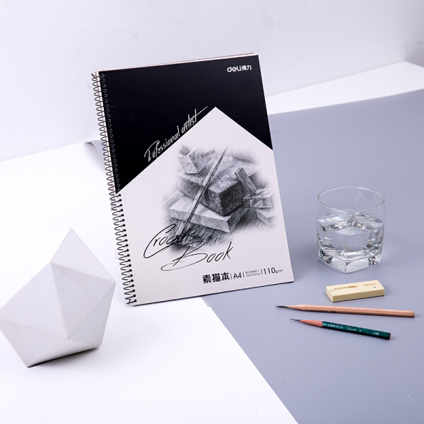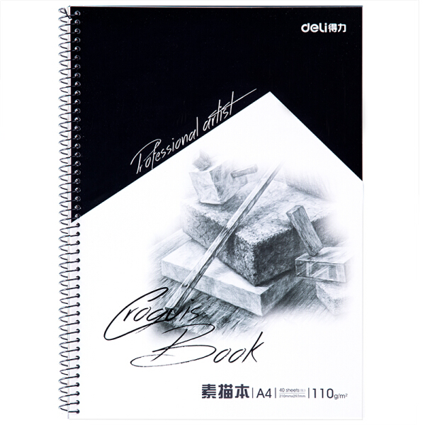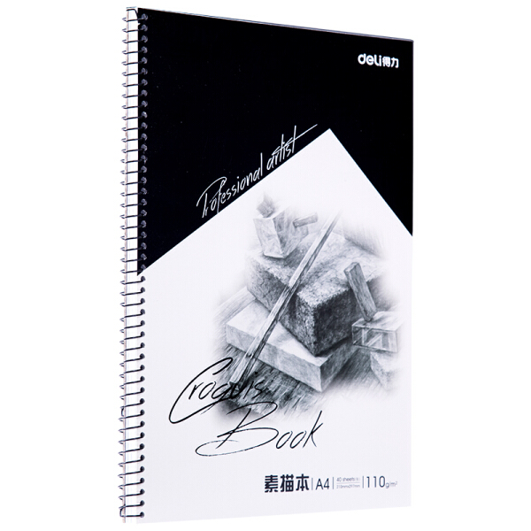 得力A4/40张美术专用素描本续写本 侧翻彩铅绘画本7698-C
