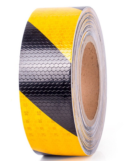 • 高反光车身警示胶带反光贴条 警示贴胶带晶格反光膜 5cm黄黑斜纹25米