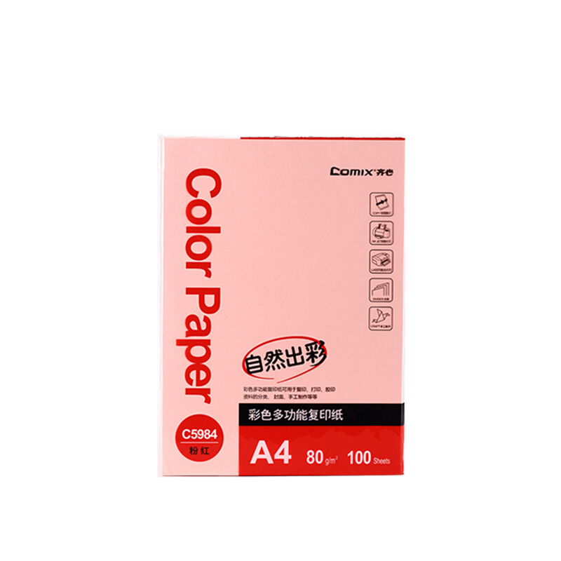 齐心(COMIX)C5984-24 A4打印用纸80g彩色纸彩纸 浅绿 100张/包