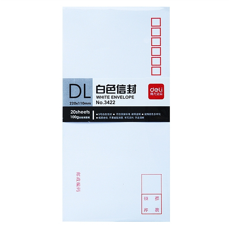 • 得力3422 白色信封中式5# 20个/包 (单位:包) 白
