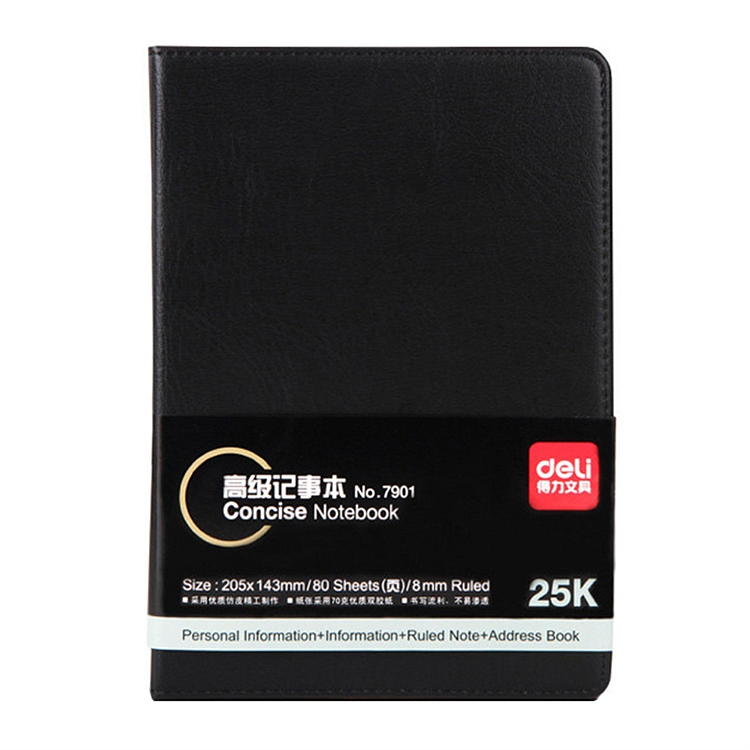 • 得力 7901 皮面笔记本 25K/80张 (单位:本) 黑