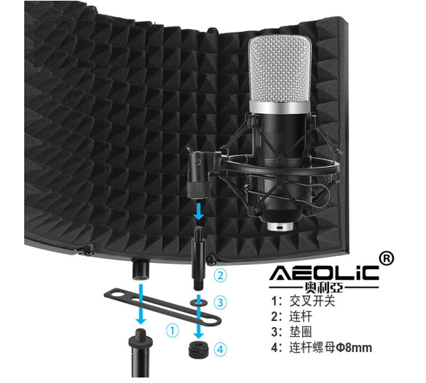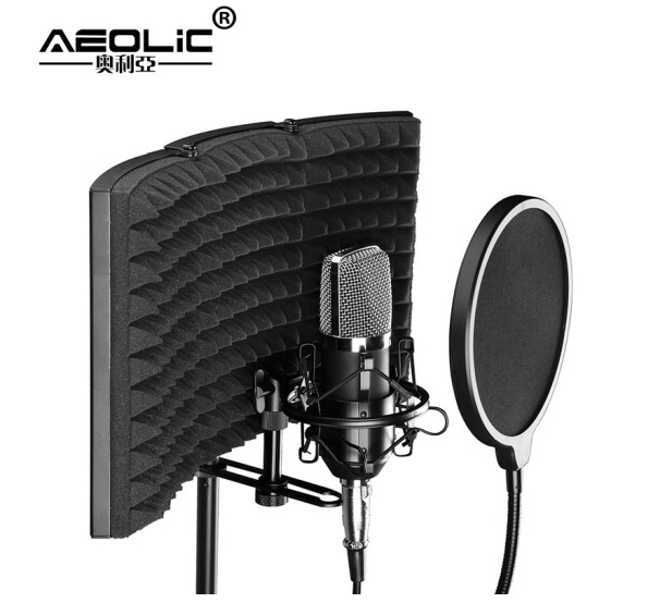 奥利亚(AEOLiC) 麦克风录音棚隔音罩话筒防风屏防喷网吸音罩防噪音降噪板三门 三门隔音罩+支架+防喷罩