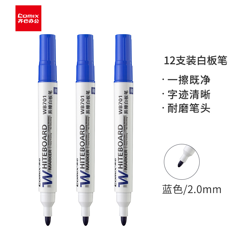 齐心(Comix) 色泽明亮可擦易擦白板笔 蓝色 WB701