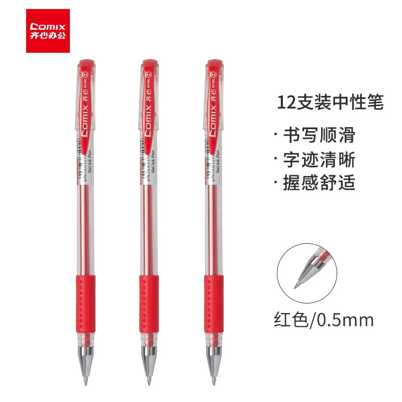 • 齐心(Comix)GP306 0.5mm 经济实用商务中性笔/水笔/签字笔 红色