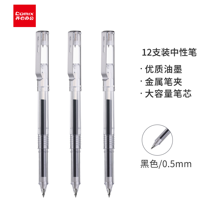 • 齐心(Comix)黑色金属笔夹中性笔签字笔水笔0.5mm GP359
