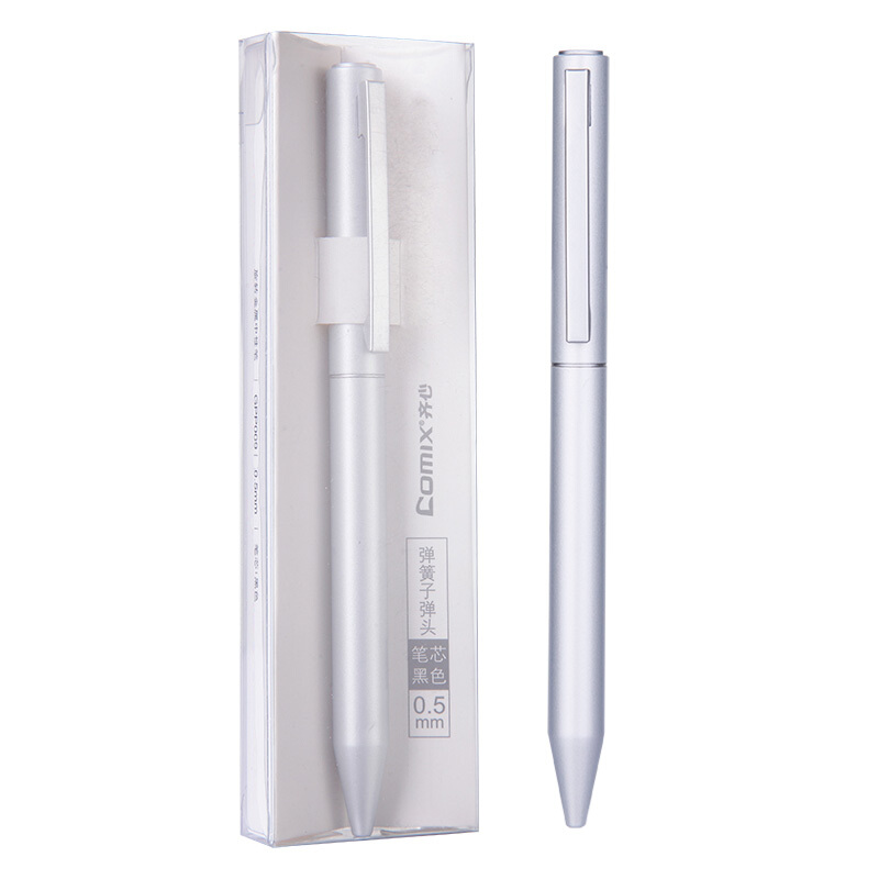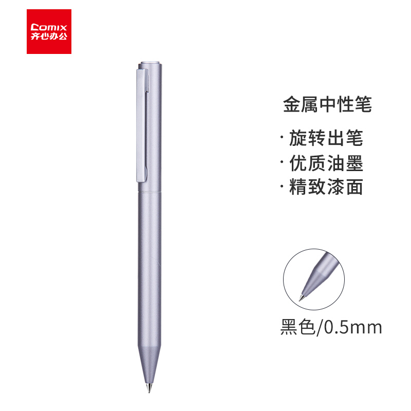 • 齐心(Comix) 0.5mm 深灰色旋转金属中性笔 子弹头黑色油墨笔/水笔/签字笔 单支装/GPP009