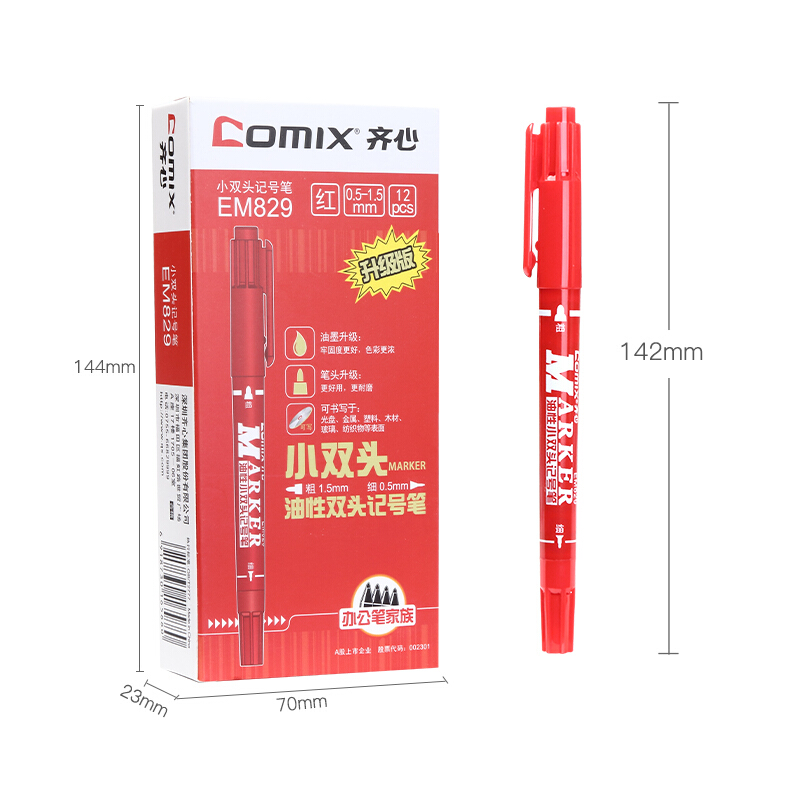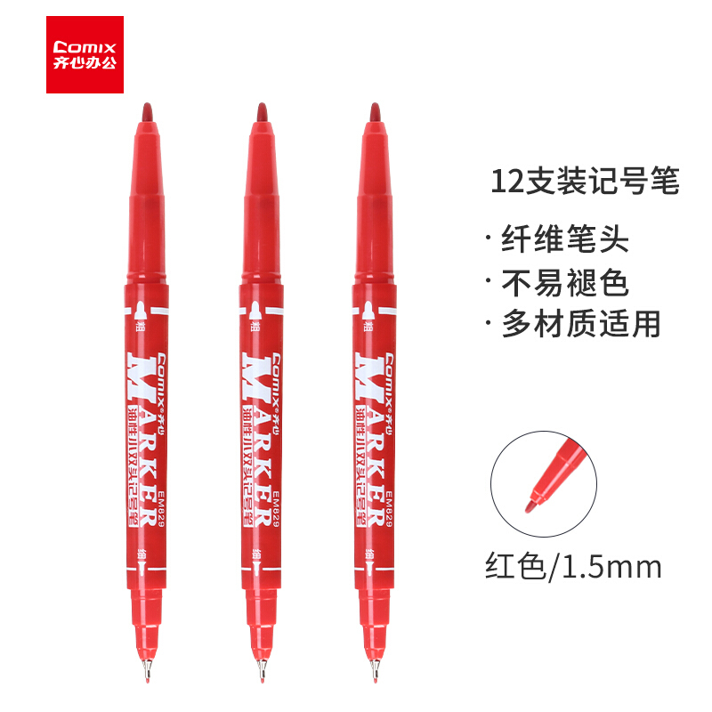 • 齐心(Comix)小双头防水速干油性物流记号笔大头笔签名笔马克笔 红色 EM829