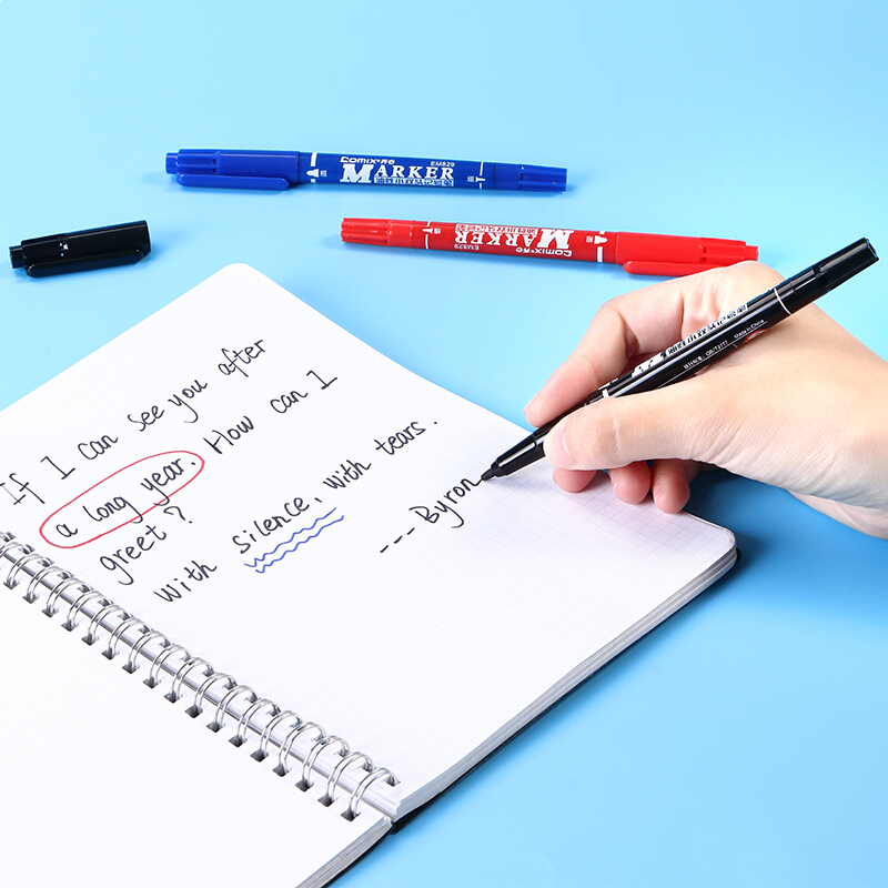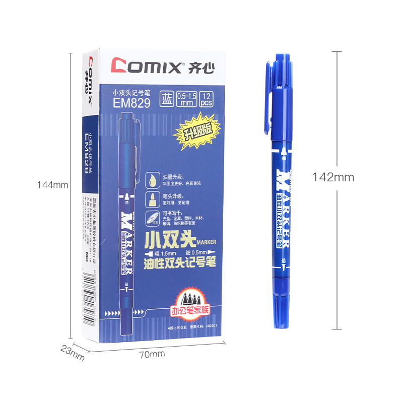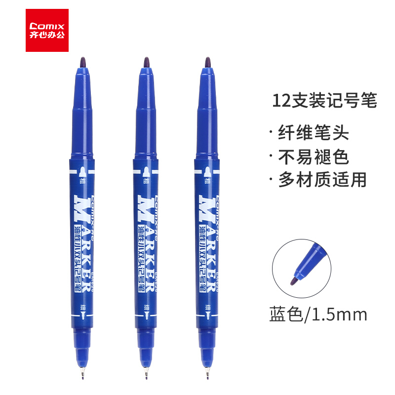 • 齐心(Comix)小双头防水速干油性物流记号笔大头笔签名笔马克笔 蓝色 EM829