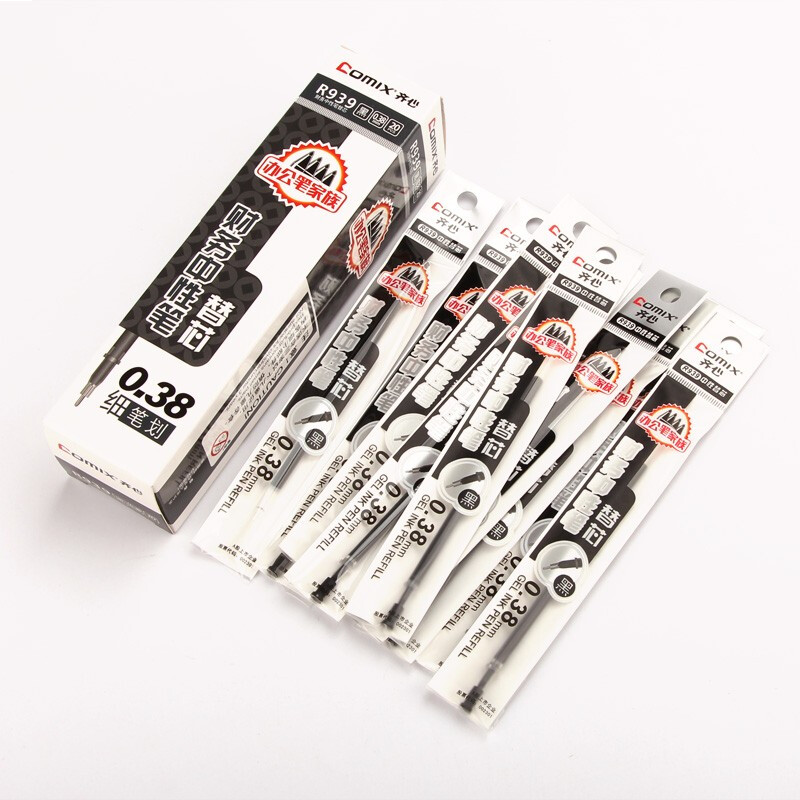 齐心(COMIX)中性笔笔芯 替芯 书写顺滑 商务办公财务记账0.38-1.0mm黑色 R939 0.38mm 全针管