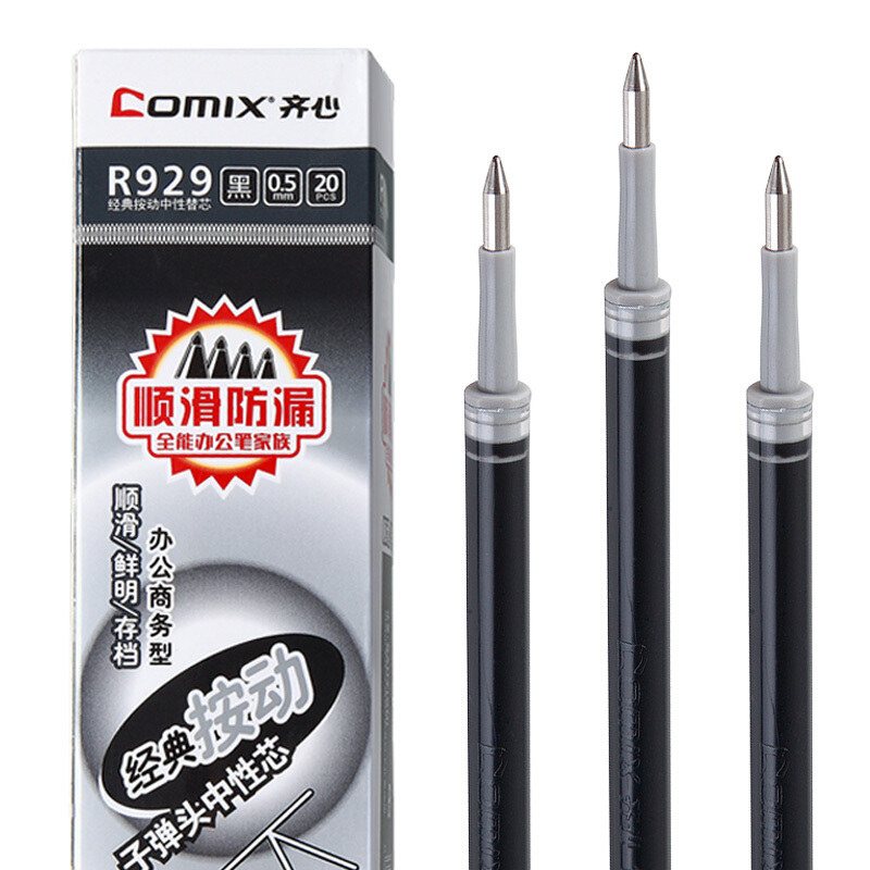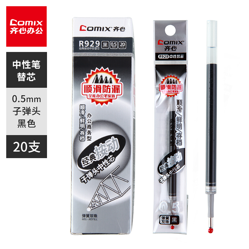 齐心R929 中性笔芯 签字笔芯0.5mm 20支/盒 黑色(20支装)
