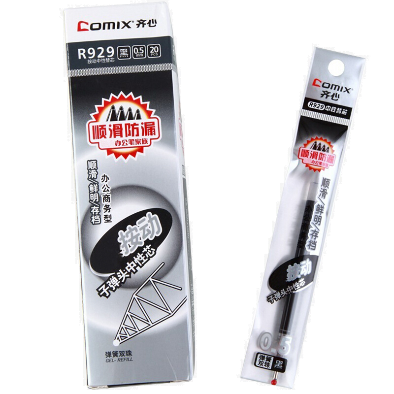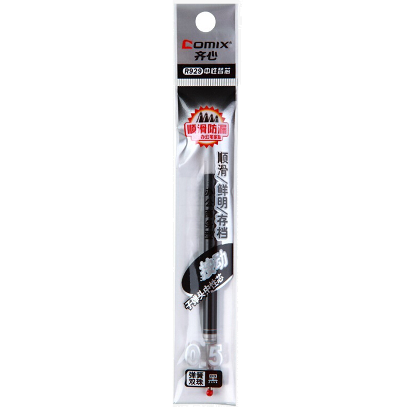 齐心(COMIX)0.5mm黑色子弹头按动中性笔芯水笔签字笔替芯 R929