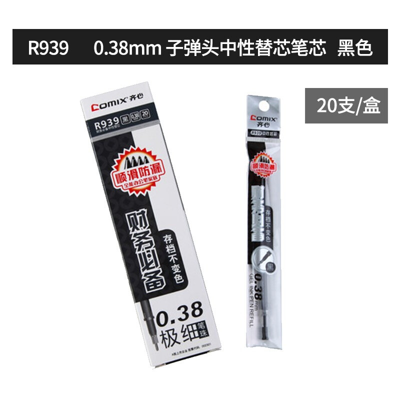 齐心(COMIX)R939中性笔笔芯 替芯 书写顺滑 商务办公 0.38mm 全针管