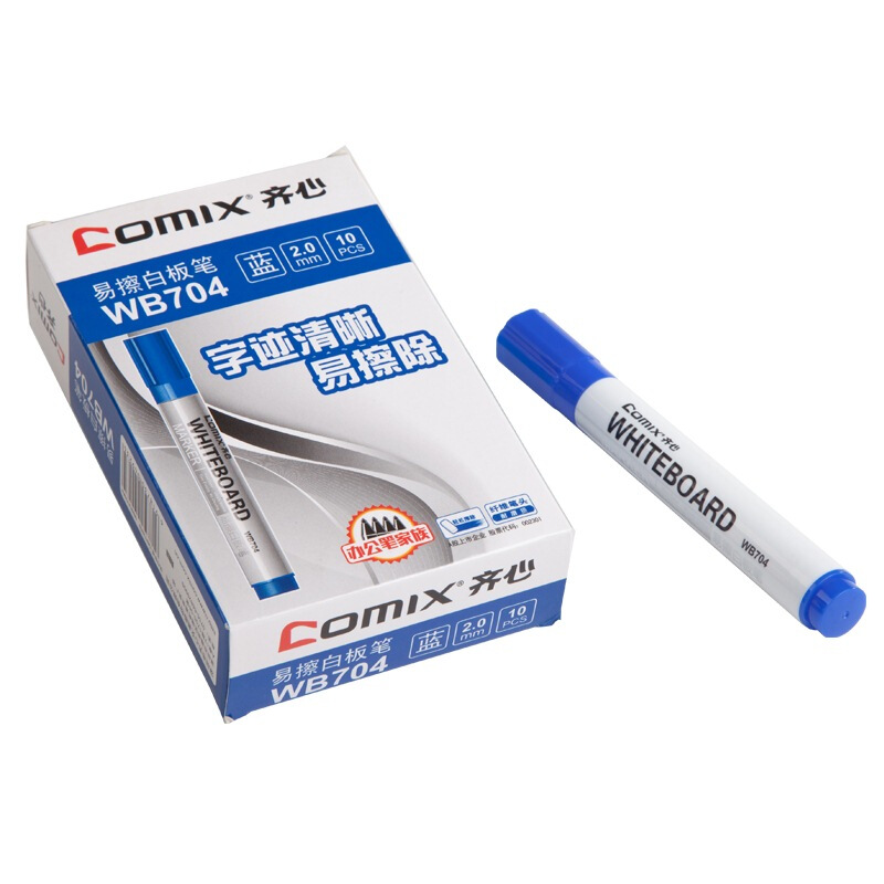 • 齐心(COMIX)WB704 易擦白板笔10支装 蓝色