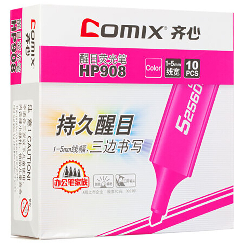 • 齐心 HP908 醒目荧光笔5.0mm 1支/盒 粉