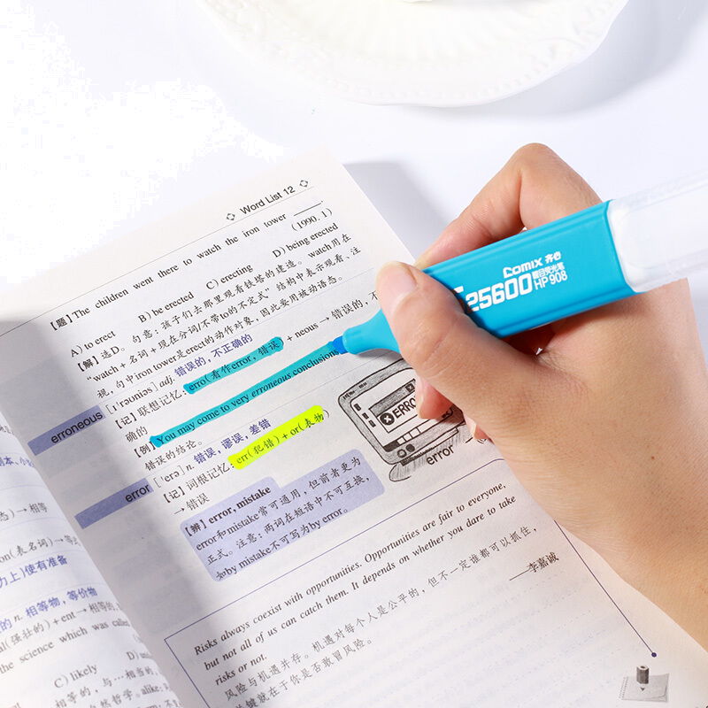 齐心荧光笔彩色笔重点标记笔固体醒目笔闪光记号笔HP908 绿色