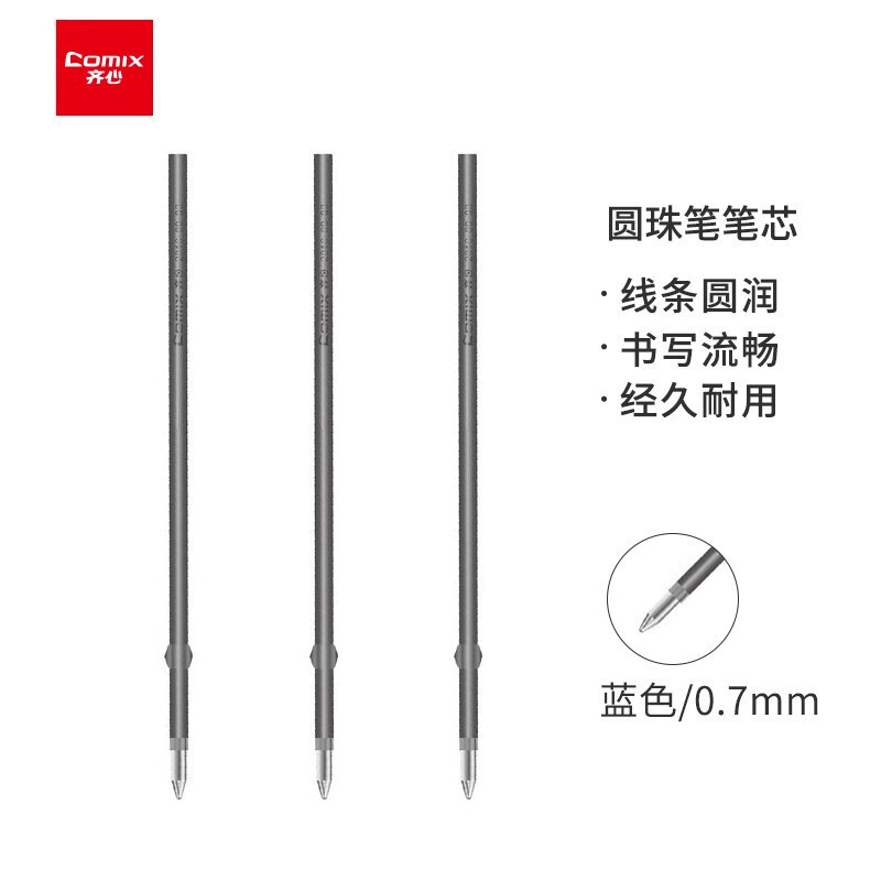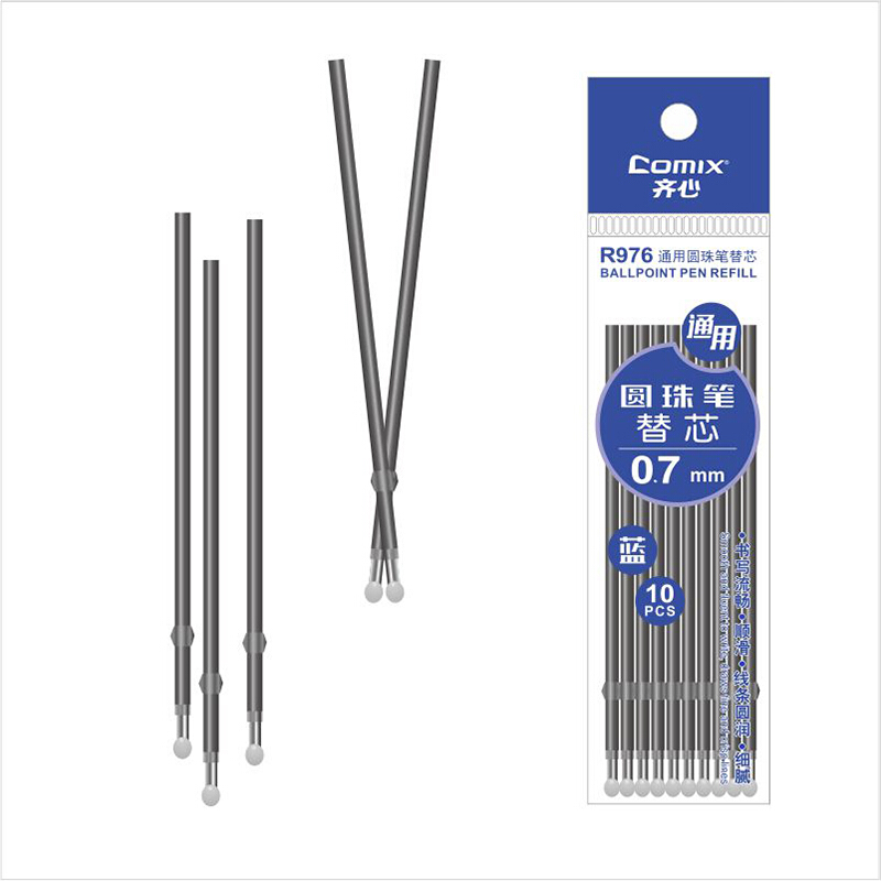 齐心(Comix) 按动圆珠笔 蓝色伸缩原子笔0.7mm 商务办公用品 圆珠笔笔芯 10支装 R976