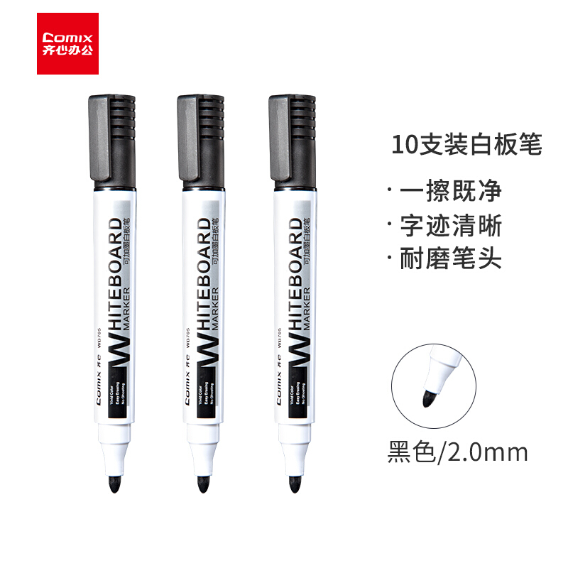 • 齐心(COMIX)可擦可加墨白板笔 黑色 WB705