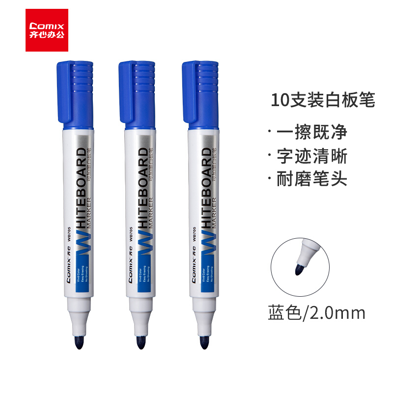 • 齐心(COMIX)可擦可加墨白板笔 蓝色 WB705