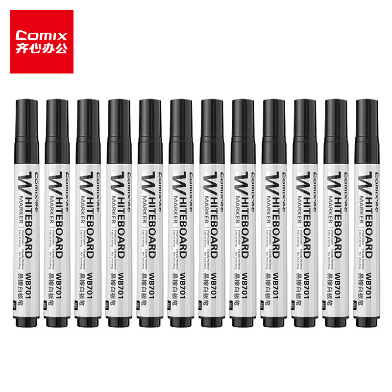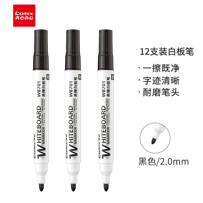 • 齐心(Comix)WB701 色泽明亮可擦易擦白板笔 黑色