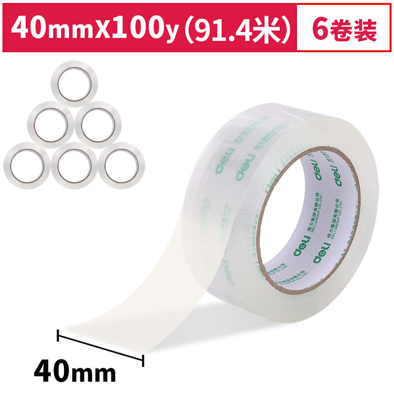 • 得力30311 高品质高透明封箱胶带打包胶带 40mm*100y*50um 6卷装