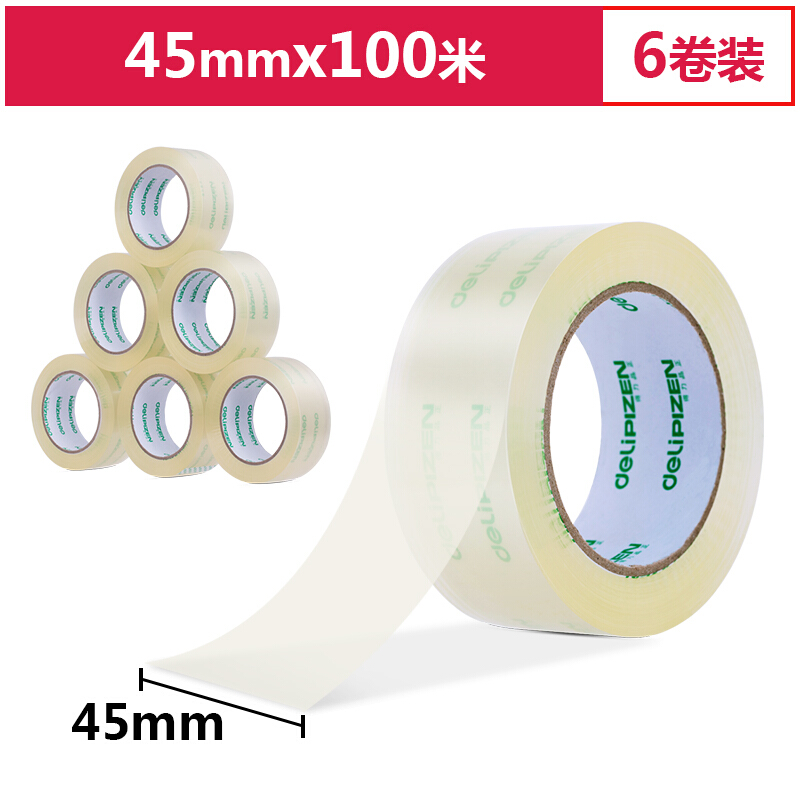 • 得力33193 高品质高透明封箱胶带打包胶带 45mm*100m*50um 6卷/筒