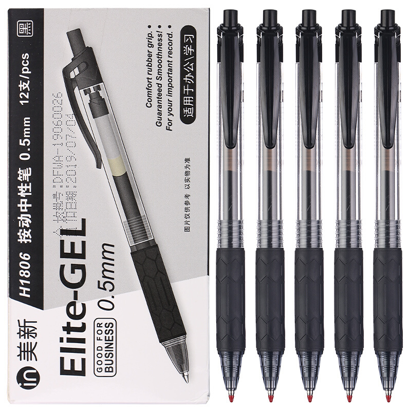晨光(M&G)文具0.5mm黑色中性笔 按动子弹头签字笔 美新系列H1801水笔 12支装XGPH1806