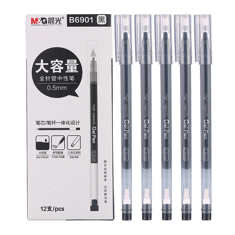 • 晨光AGPB6901黑色中性笔0.5mm大容量签字笔 笔杆笔芯一体化水笔 12支/盒
