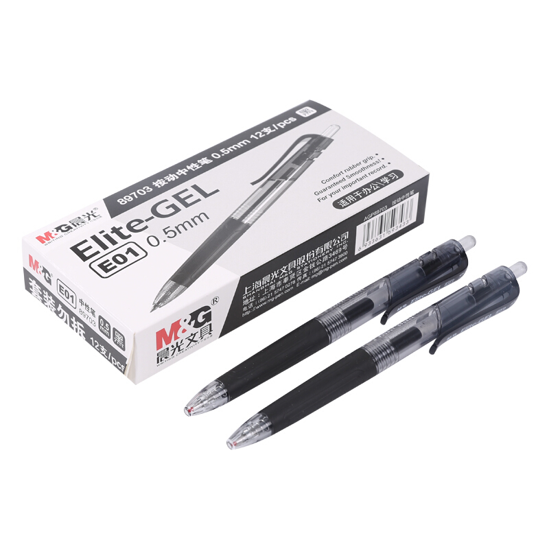 晨光(M&G)文具0.5mm黑色中性笔 子弹头签字笔 精英系列E01办公水笔 12支/盒AGP89703