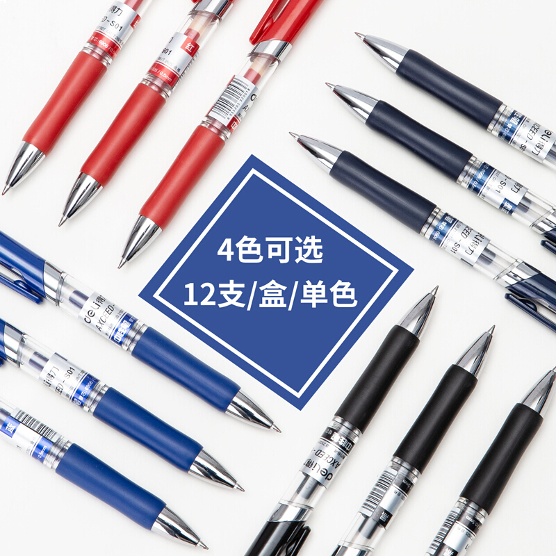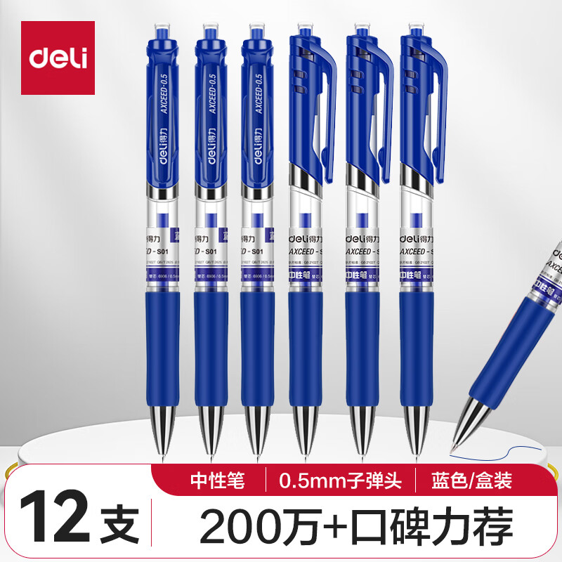 • 得力(deli)S01中性笔签字笔 0.5mm子弹头经典办公按动笔水笔 墨蓝12支/盒