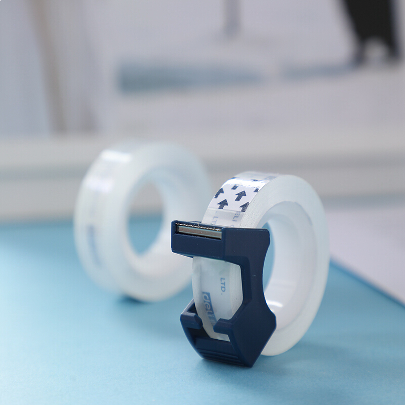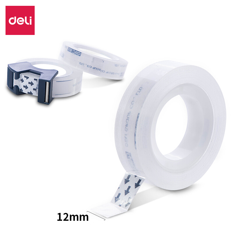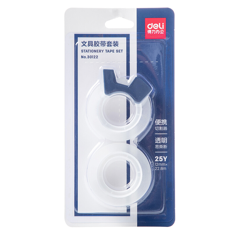 • 得力30122 透明高粘文具胶带/小胶带 12mm*25Y 2卷套装 带简易胶带切割器