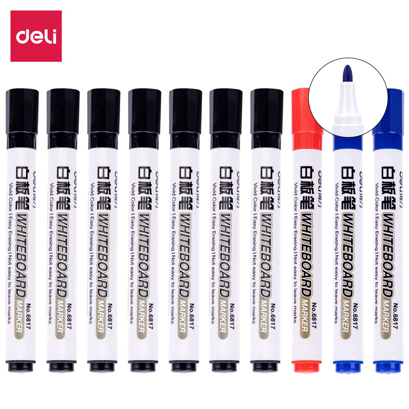 得力(deli)白板笔套装 可擦易擦 办公会议 7黑2蓝1红
