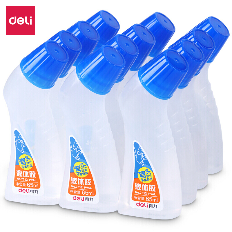 得力(deli)65ml高粘度弯头液体胶水 12只装 办公用品 蓝色7312
