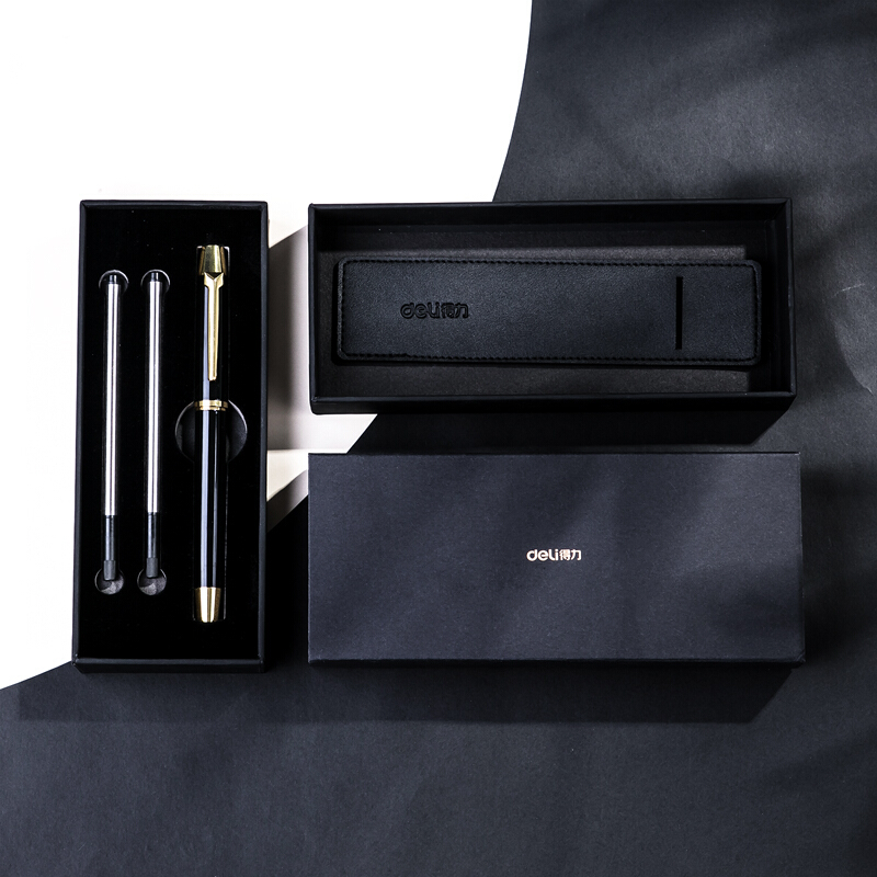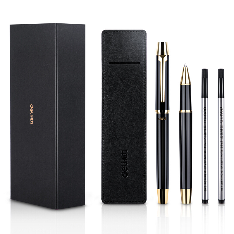 • 得力S158 中性签字笔 0.5mm 附2支替芯 卓然系列金属宝珠笔套装