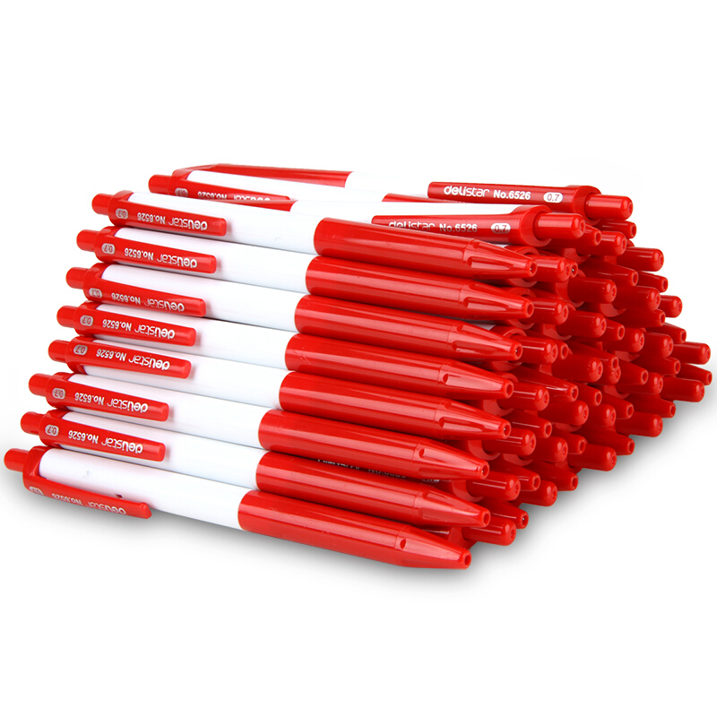 得力(deli)0.7mm按动60支圆珠笔中油笔 红色原子笔