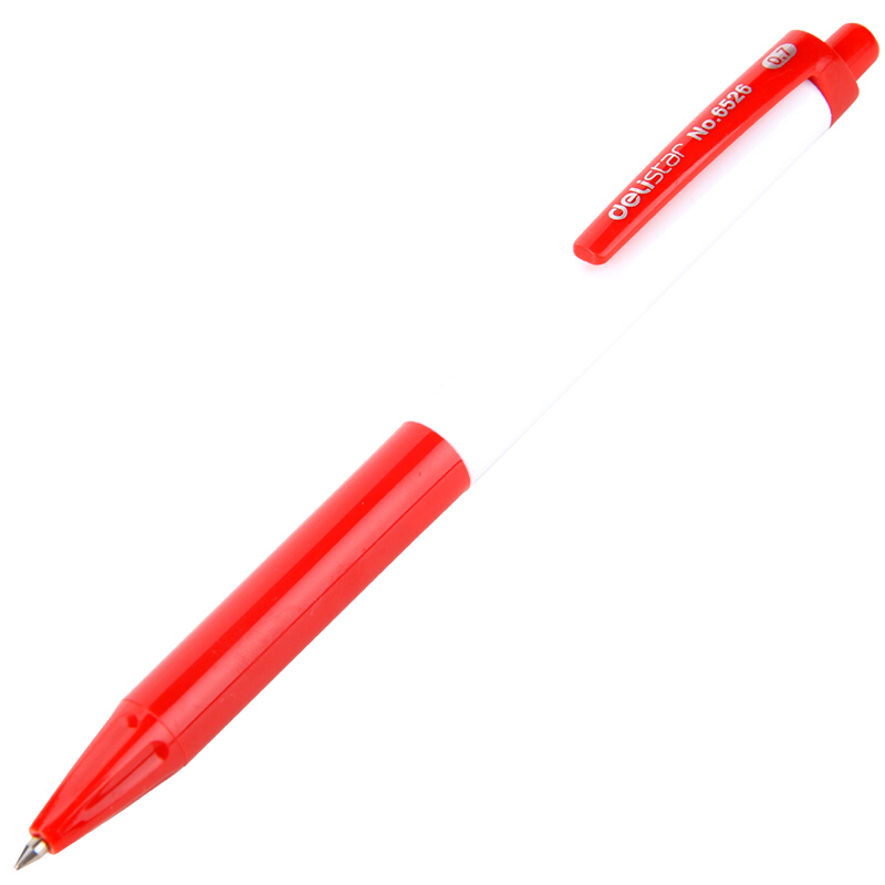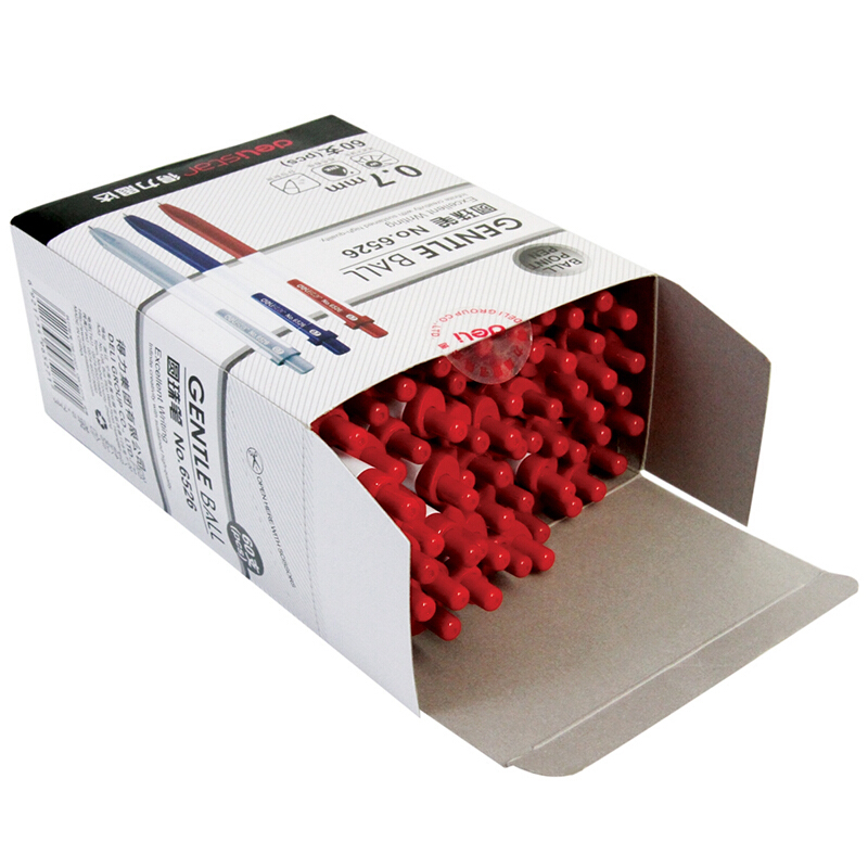 • 得力(deli)0.7mm按动60支圆珠笔中油笔 红色原子笔