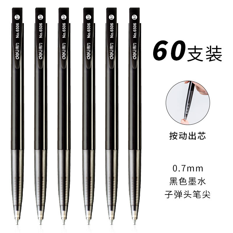 • 得力6506 0.7mm按动圆珠笔 黑色原子笔