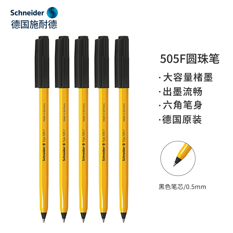 • 施耐德505F原子笔办公写字经典黄杆0.5mm505F黑色5支装