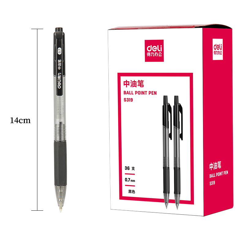 得力(deli)0.7mm低粘度圆珠笔中油笔 英文书法笔36支/盒DL-S319黑