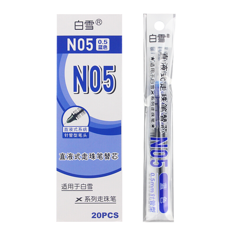 • 白雪N05 配套笔芯-蓝色0.5mm针管型中性笔彩色水性笔 N05配套笔芯-蓝色(20支盒装)