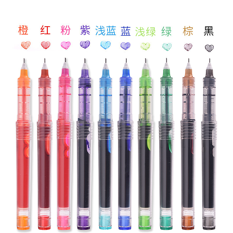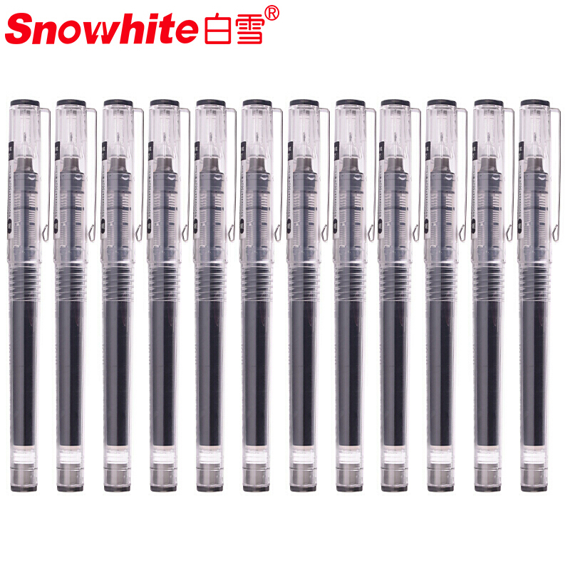 • 白雪(snowhite)X55中性笔多色直液式走珠笔签字笔学生用中性笔考试笔 黑色墨水12支装