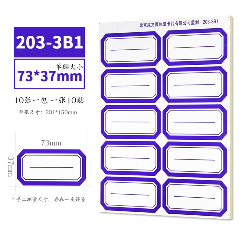 • 成文厚 203-3B1 大蓝单书标 不干胶标签纸 书标标签 价格贴 分类贴10张/包