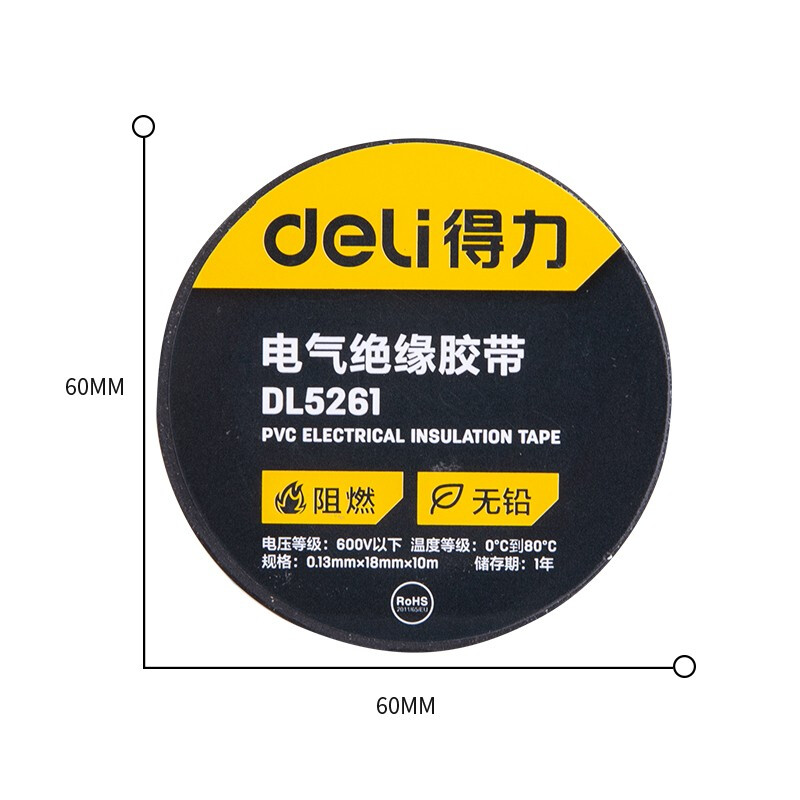 • 得力DL5261 pvc电工胶带绝缘电气电线胶布