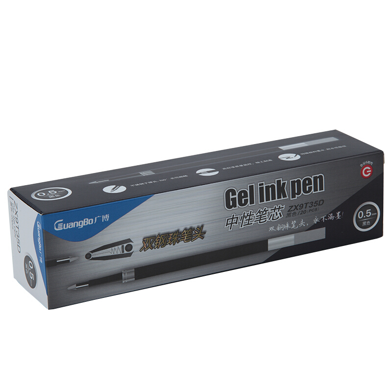 广博(GuangBo) 0.5mm黑色按动中性笔芯 签字笔替芯 配合使用按动签字笔 20支装 ZX9T35D