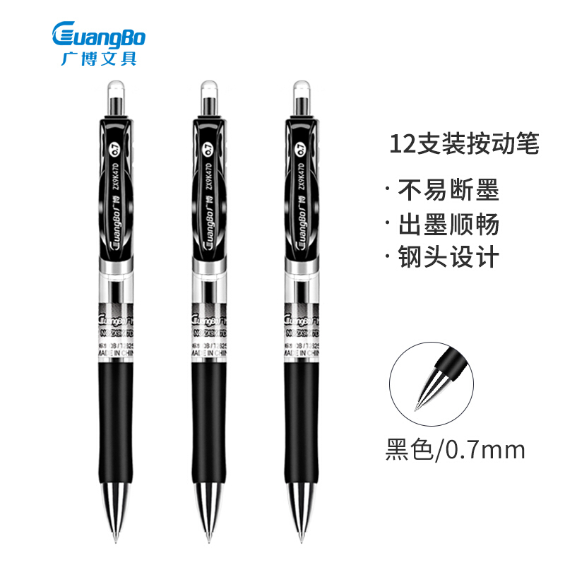 广博(GuangBo) 0.7mm黑色按动中性笔 办公签字笔 水笔12支装 ZX9K47D