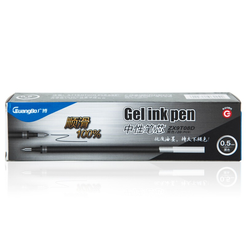 广博(GuangBo) 0.5mm黑色子弹头中性笔芯 办公签字笔芯 水笔芯20支装 ZX9T08D