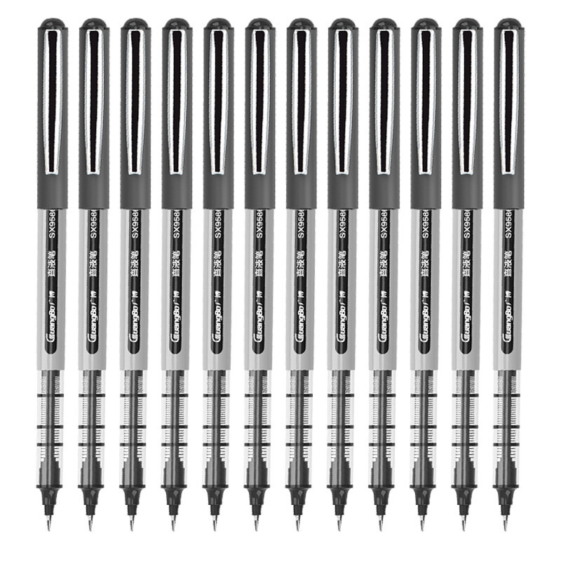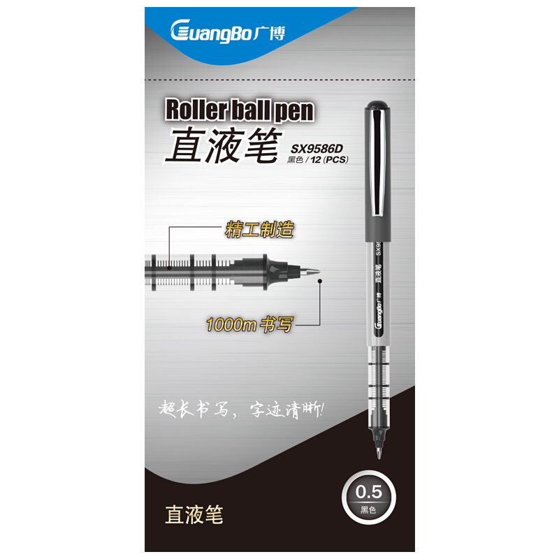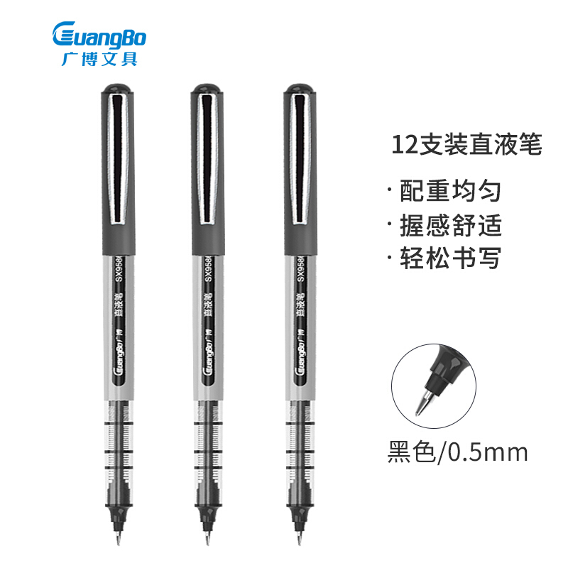 • 广博(GuangBo)0.5mm黑色直液式走珠笔 签字中性笔 学生考试笔 12支/盒 SX9586D