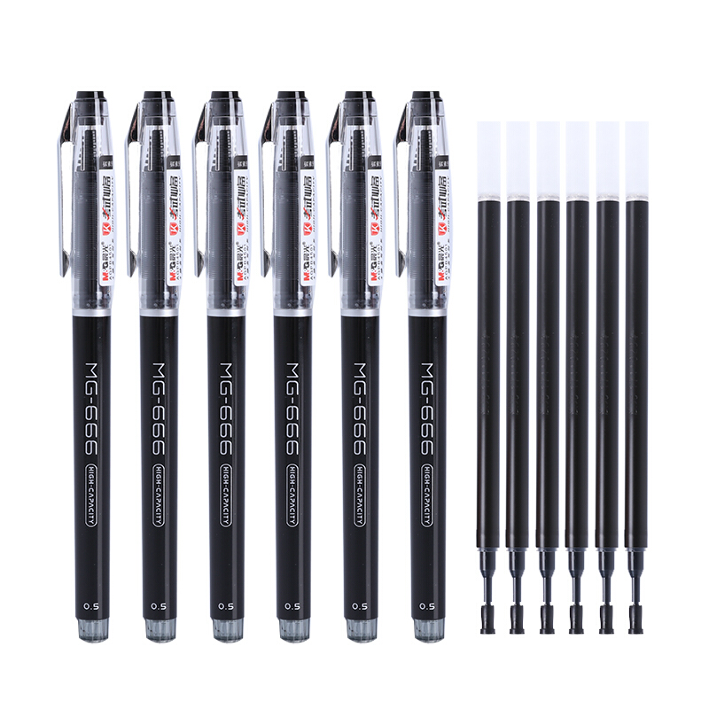 • 晨光HAGP0930/MG666 0.5mm 黑色中性笔 考试签字笔 水笔套装(6支笔+6支芯)HAGP0930