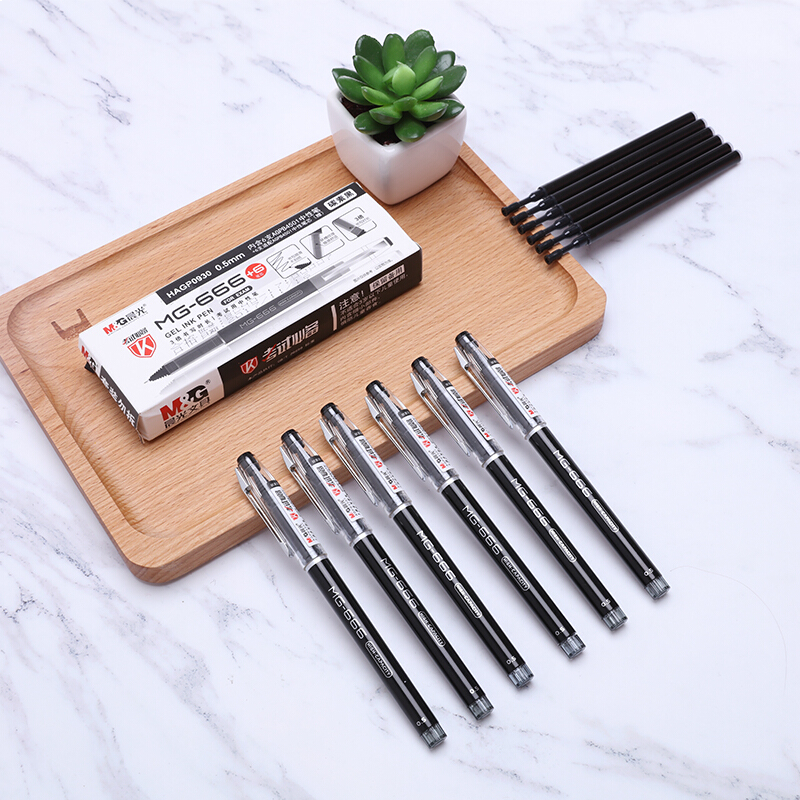 晨光(M&G)文具MG666/0.5mm黑色中性笔 考试签字笔 水笔套装(6支笔+6支芯)HAGP0930