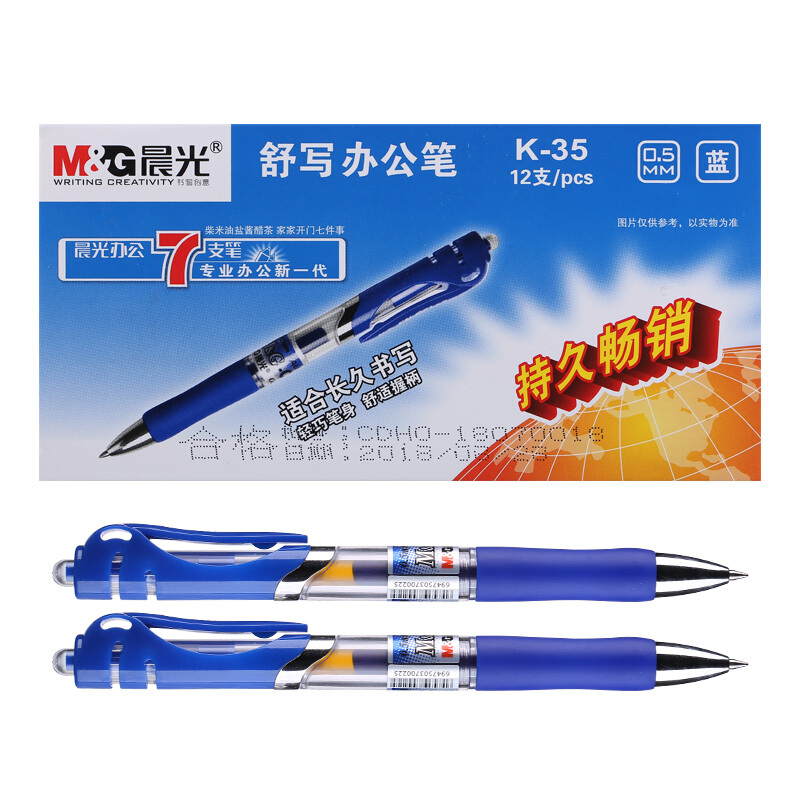 • 晨光K35/0.5mm 蓝色 经典按动子弹头签字笔