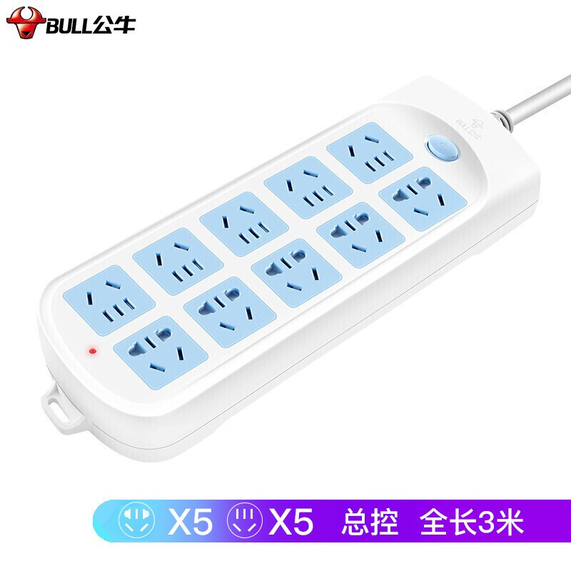 公牛新国标插座/插线板/插排/排插/接线板/拖线板 带功率保护 GN-605 十位总控-3米